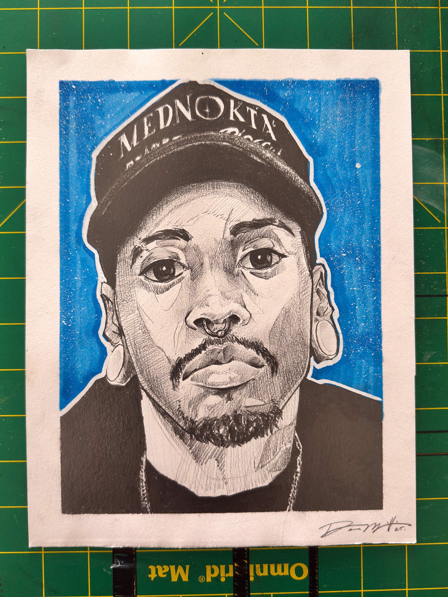 400 Series 9" x 12" Toned Tan Paper (184 lb) drawn w/ Graphite, Acrylic Paint, and Alcohol Markers.